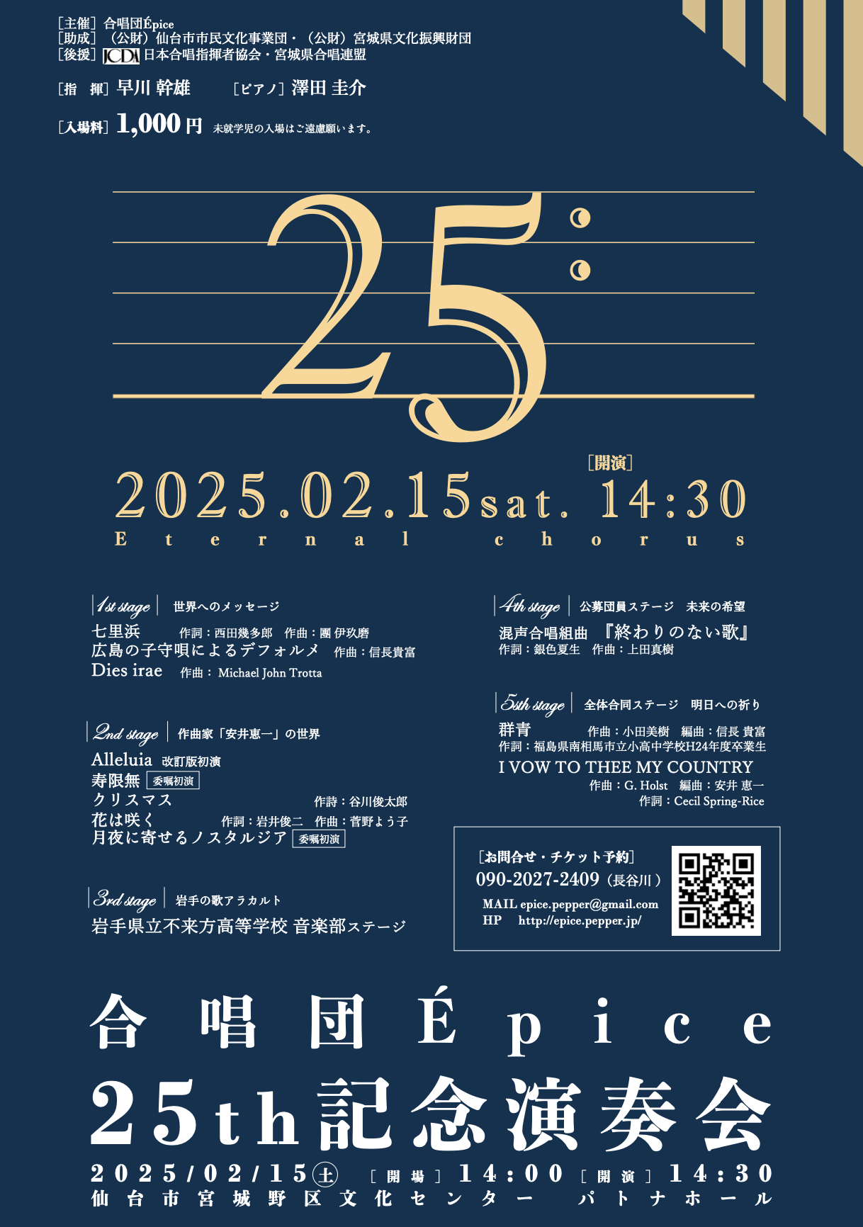 宮城県仙台市で活動する、合唱団Épice(エピス)の公式ホームページです。