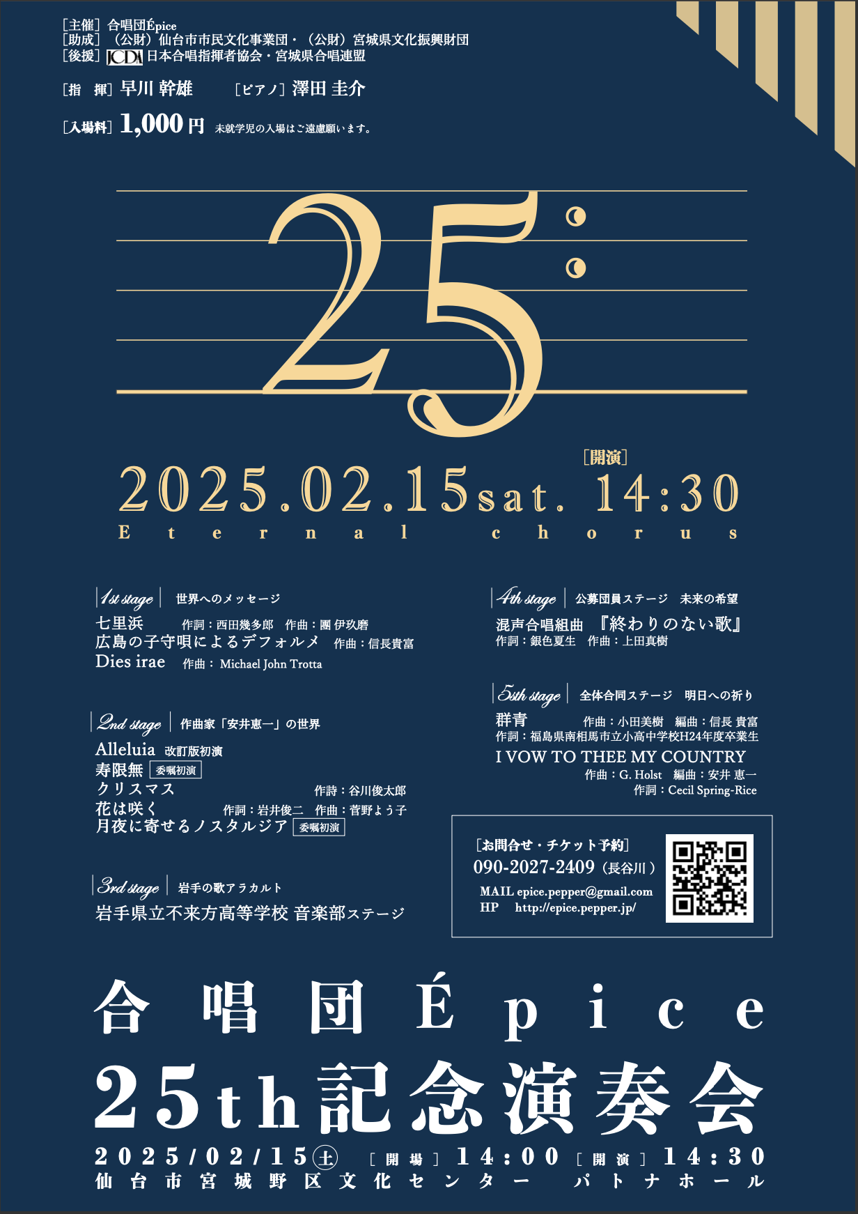 宮城県仙台市で活動する、合唱団Épice(エピス)の公式ホームページです。